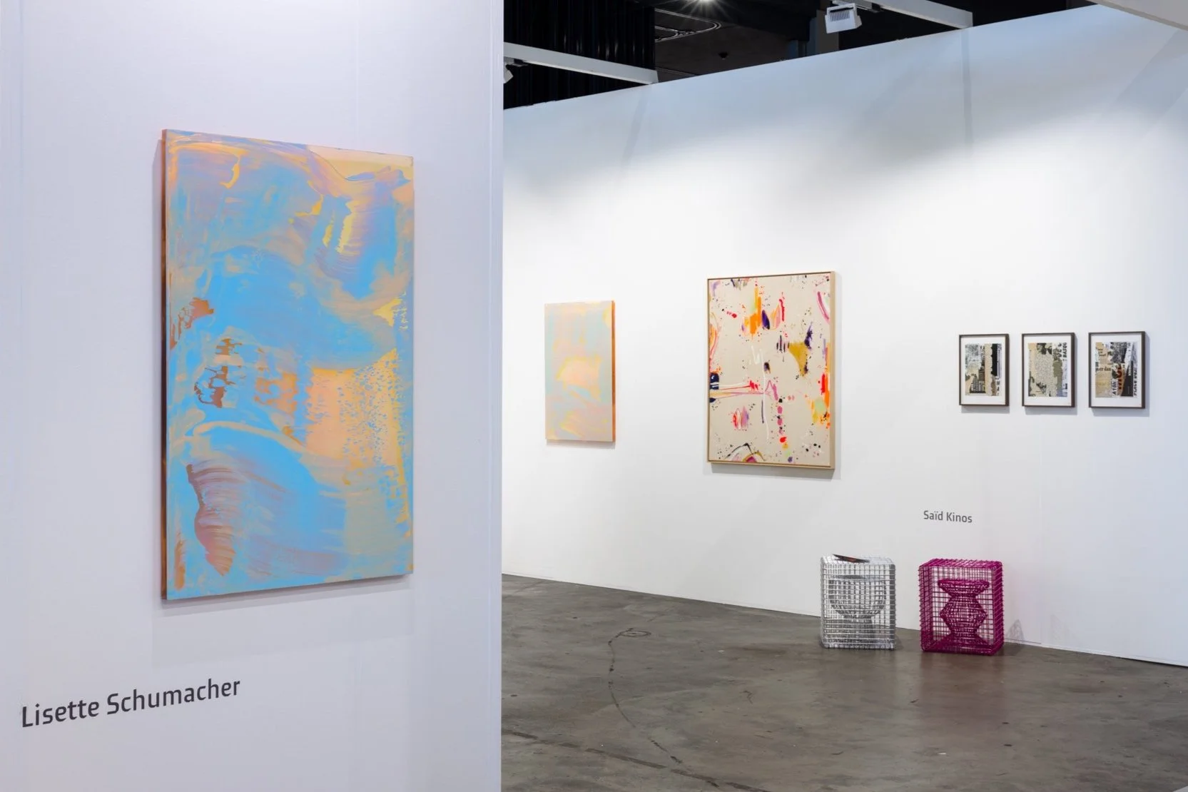 Saïd Kinos presented a new direction in his practice, combining collage techniques with gestural painting and bold typography. In these works, he reflects on themes of fatherhood, identity, and language, blending visual rhythm with intimate storytelling. These compositions balance graphic clarity with expressive depth, inviting viewers to pause and reflect.